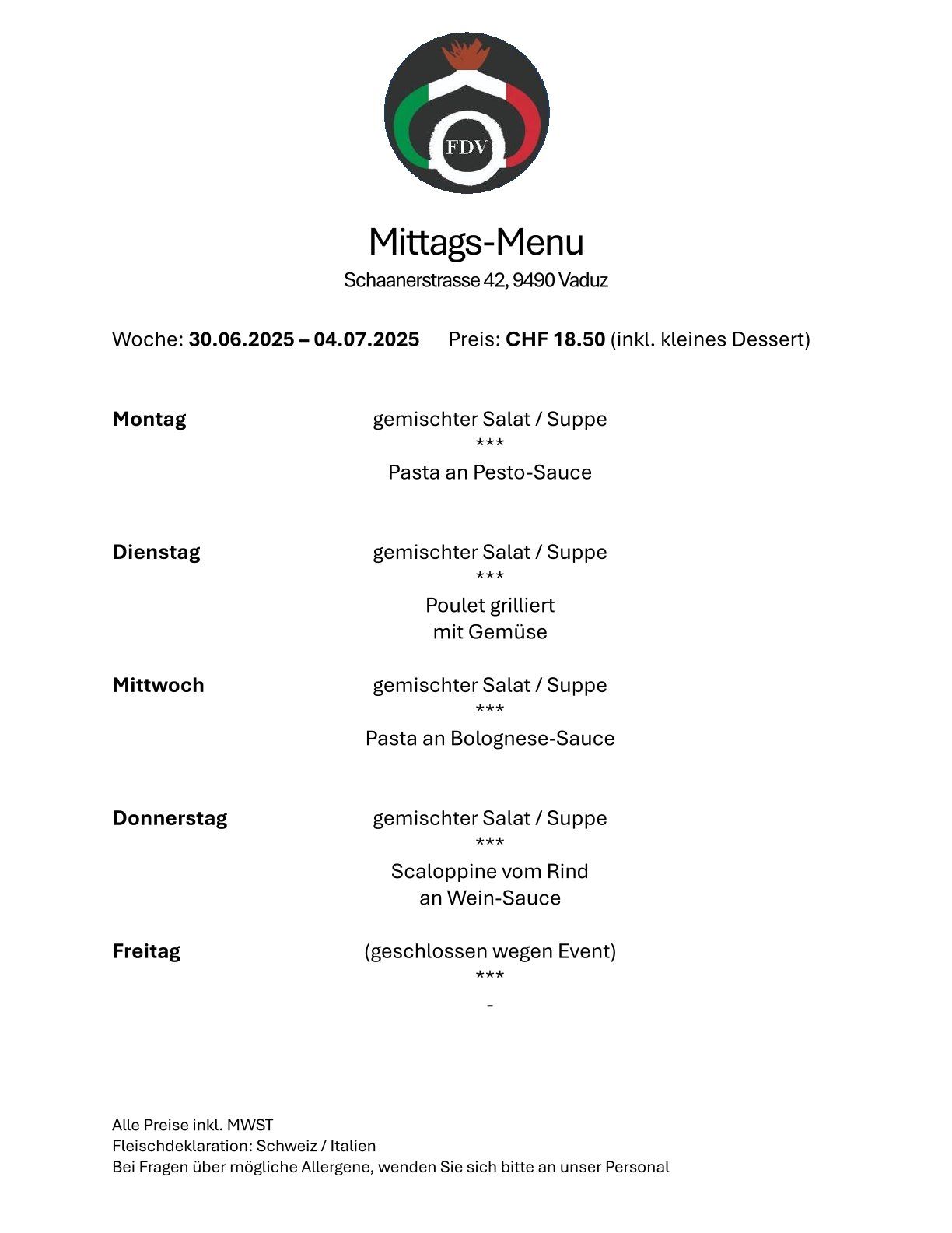 Gerne haben wir für Sie von Montag-Freitag am Mittag sowie am Samstag und Sonntag gegen Reservationen geöffnet.